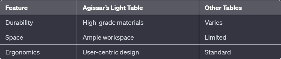 In the digital age, having a table that can integrate with technology is a huge plus. Agissar’s Light Table can be equipped with tech-friendly features, such as built-in charging stations or data ports, enhancing its functionality in a tech-driven workplace.