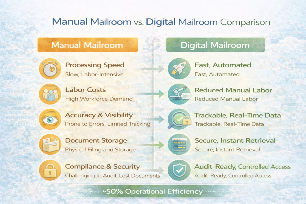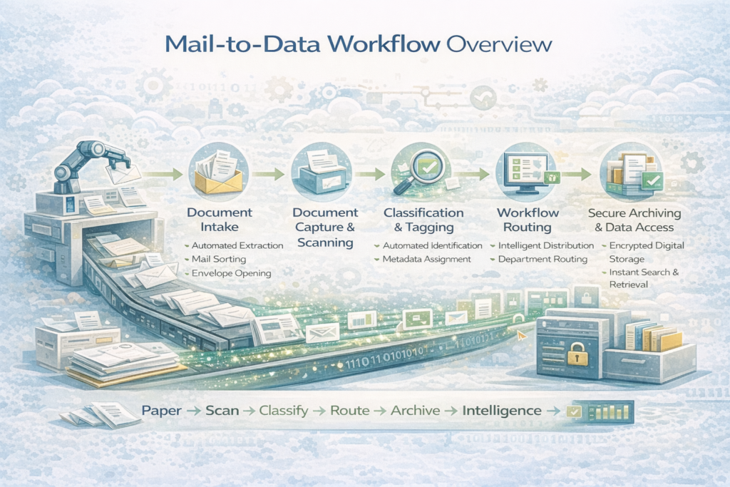 Today’s leading enterprises are transforming their mailrooms into data processing centers. Instead of simply delivering envelopes, modern mail operations convert physical documents into structured digital information that feeds business systems, analytics platforms, and compliance workflows.